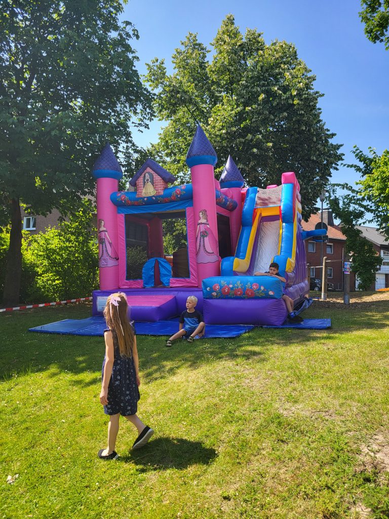 Doch danach war der Spaß noch lange nicht vorbei: Die Kinder durften an einem lustigen Quiz-Spiel teilnehmen, bei dem Wissen, Teamgeist und eine große Portion Humor gefragt waren. Als Belohnung wartete eine süße Überraschung – leckeres Eis für alle! Und als besonderes Highlight durften die Kinder sich auf einer Hüpfburg so richtig austoben.